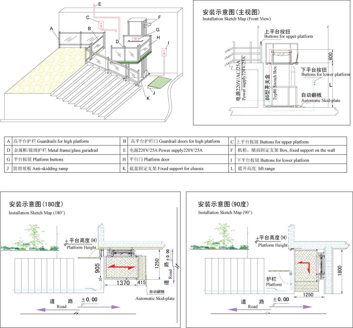 為了解決大量老式高層小區(qū)和公共場(chǎng)所的無障礙設(shè)施改造,我公司經(jīng)過大量的市場(chǎng)調(diào)查,結(jié)合原來產(chǎn)品研制開發(fā)了VL型無障礙升降平臺(tái)。VL型無障礙升降平臺(tái)采用大截面鋁型材垂直導(dǎo)向系統(tǒng),液壓或螺桿驅(qū)動(dòng),升降平穩(wěn)安全,外部采用鋁板靜電噴塑機(jī)箱和面板、外型高檔。直接安裝于地面,無需土建配套地坑,施工簡(jiǎn)便,產(chǎn)品放置戶外不易積水,不易生銹,維護(hù)簡(jiǎn)便。螺桿式驅(qū)動(dòng)能適應(yīng)零下40度的低溫,適用于我國北方地區(qū)。